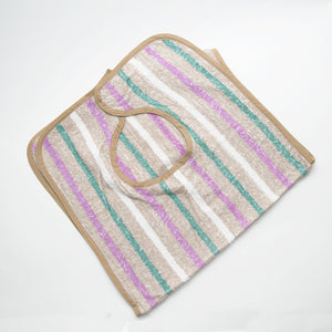 Durable, yet soft to the touch, this adjustable clothing protector is made from brushed polyester with a PVC back layer that makes it completely waterproof. In a larger size and featuring three sets of metal snaps behind the neck, this clothing protector provides more complete coverage for any resident. The subdued color and pattern are exclusive and offer a more dignified look