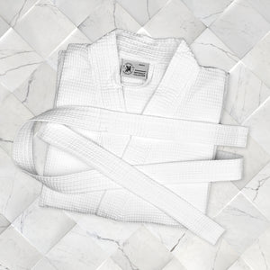 The 48" x 60"White Oxford Honeycomb Waffle Bathrobe -is a luxurious yet practical addition to your bath and spa essentials. Made from a high-quality blend of60% combed cotton and 40% polyester, this bathrobe combines durability with the softness of cotton. Itshoneycomb waffle weave design is both stylish and functional, offering a lightweight feel, easy maintenance, and quick-drying capabilities, making it ideal for tropical destinations or everyday use.